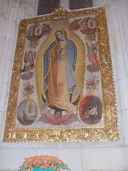 Un lienzo de la Virgen de Guadalupe, copia fiel al original, que fue regalado a Durango, cuna del que fue primer obispo de México y contemporáneo con las apariciones marianas, Fray Juan de Zumárraga.