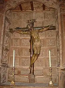 Además del retablo mayor hay otros cuatro de estilo barroco, de la escuela castellana del siglo XVII. Dos de ellos se encuentran en los brazos del crucero, siendo su autor Juan Fernández de Rioseco. Los otros dos están también en el crucero, a derecha e izquierda del ábside. Uno de estos dos es bastante austero, con ornamentación de casetones. Sobre este espacio con forma de concha está colocada la talla renacentista (de la escuela de Berruguete) de un cristo llamado de la Concha que tiene la particularidad de presentar una forma curvada hacia su izquierda, saliéndose la figura del palo de la cruz.