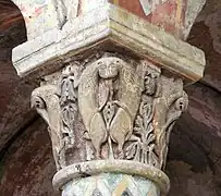 Las columnas del ábside están coronadas por capiteles románicos característicos de la eclosión de este estilo en Poitiers. Además de esculturas de acanto, también las hay de cuadrúpedos como cabras o leones. Estos últimos, guardianes del santuario, normalmente se encuentran en las iglesias del Poitou.