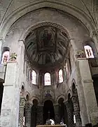 La nave da a un santuario románico elevado sobre la cripta. La relación con el gótico angevino es más que visible: los muros han sido reforzados por arcadas en este estilo, compuestas por nervaduras transversales y longitudinales que reposan en un conjunto de columnas.