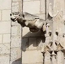 El exterior se caracteriza por una elegante cabecera que traduce perfectamente el plano de la iglesia: una cripta iluminada por la luz del día, tres absidiolos, un ábside y una aguja en el muro oriental. Esta aguja es posterior a la construcción de la cabecera. Es una cabecera angulosa que anuncia el arte gótico, aunque se suaviza por las arcadas situadas en la base.