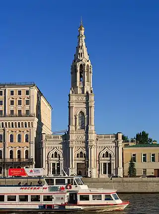 La iglesia, tal vez fundada por mercaderes de Novgorod,[1] da nombre al muelle Sofievskaya del río Moscova, y sobre su fachada de color malva destaca una elevada torre campanario de estilo ecléctico de Nikolái Kozlovsky, que se trazó en 1860, y que despunta sobre la ribera del Moscova.