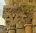 Destacan los capiteles y la decoración en las roscas de los arcos de la portada, del arco de triunfo y de la ventana absidial, por estar ejecutados con gran maestría y se relacionan con el taller ovetense. En ellos se describen, caballeros con halcones, pájaros afrontados, leones y abundante decoración fitomórfica, así como círculos, semicírculos y dientes de sierra, creando un espacio decorativo recargado. Conserva parte de los canecillos originales situados en la cabecera.