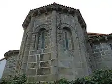 Se trata de un edificio de planta basilical formado por tres naves divididas en cuatro tramos en su forma original, hoy reducidos a tres por una reforma del siglo XIX. Las naves terminan en tres ábsides semicirculares (los laterales) y pentagonal (el central). En el exterior presentan semicolumnas adosadas en cuatro ángulos del polígono. Los ábsides están cubiertos por bóvedas de cañón semicirculares rematadas en cuarto de esfera. Los arcos formeros se apoyan sobre pilastras de sección rectangular, que sustentan una cubierta a dos aguas. Los capiteles y canecillos están decorados con bolas, figuras vegetales, animales y humanas.