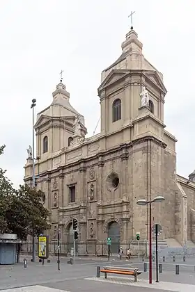 La cuarta y definitiva iglesia comenzó su construcción en el año 1747 bajo diseño del cantero Juan de los Santos Vasconcellos, quien contrató a canteros portugueses para la obra. Fue inaugurada en 1771, pero sus obras fueron seguidas por el arquitecto Joaquín Toesca entre 1795 y 1796.[1][2] Con el levantamiento de las dos torres se dieron por finalizadas las obras en el año 1808.[3]