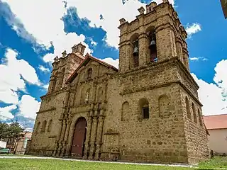La iglesia, fue construida durante la colonia, está construida en piedra y adobe, la nave única está reforzada con contrafuertes.[2] uno de los elementos destacados del templo es la portada que exhibe seis columnas salomónicas labradas en piedra.[3]