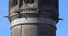 Campanario de la Iglesia de Todos Los Santos rodeado por la inscripción Ein' feste Burg ist unser Gott.