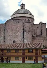 Vista lateral junto la cúpula sobresale hacia la Plaza Mayor de Cuzco.