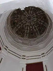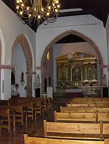 La cabecera de la iglesia, de planta cuadrada y precedida por un gran arco triunfal apuntado, se cubre por una armadura mudéjar con limas mohamares y labor de menado sobre tablas. Del centro pende un octógono de mocárabes inscrito en un cuadrado formado por ocho crucetas. Los cuadrales que dibujan la forma octogonal apoyan sobre canes lobulados. Todo el presbiterio presenta un rodapié de azulejos procedentes de un antiguo púlpito y en un lateral se conserva la pila bautismal de mármol tallado.