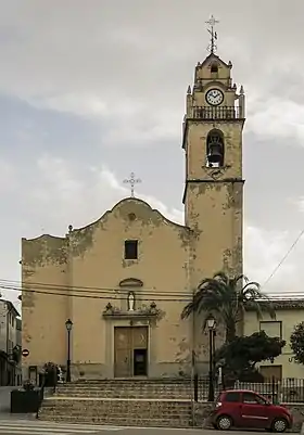 La iglesia se halla ligeramente sobreelevada respecto de los edificios de su entorno. Su fachada forma una replaza porque se encuentra ligeramente retranqueada respecto de la alineación general de las fachadas de la calle. El acceso a la puerta se realiza mediante una escalinata que salva la mencionada sobreelevación. La puerta de la fachada es la única que existe a inicios del siglo XXI, ya que una entrada secundaria que daba acceso a la capilla del Cristo fue eliminada.[3]