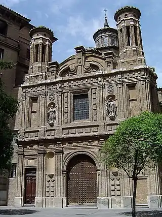 En la actualidad, la fachada de la iglesia, flanqueada por dos torreoncillos, forma uno de los lados de la Plaza de San Roque, antiguamente llamada Plaza de la Mantería, en El Coso. El interior está completamente cubierto por pinturas realizadas por Claudio Coello, pintor real, y su ayudante Sebastián Muñoz, que se trasladaron a Zaragoza durante dos años, entre 1683 y 1685, para finalizar el encargo. Las pinturas, de excepcional colorido y fantasía, resulta muy complejo, mostrando frutas, angelotes, guirnaldas, celajes, cortinas y arquitecturas fingidas, además de medallones con las virtudes y diversos retratos de personajes. La cúpula central muestra la glorificación de la Trinidad. De la extensión original de las pinturas, sólo se conservan, a partir de las cornisas, las de los techos y cúpulas, habiéndose perdido las de la parte inferior de las paredes, aproximadamente la mitad de la superficie pintada originalmente. Con el derrumbamiento reciente de una cúpula se han perdido también las pinturas que la cubrían.[1] El resto parece estar en bastante mal estado, temiéndose su pérdida si no se restaura.
