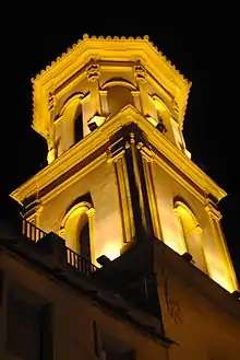 La torre-campanario se remonta al 1788, siendo de estilo barroco del siglo XVIII (Barroco clasicista).