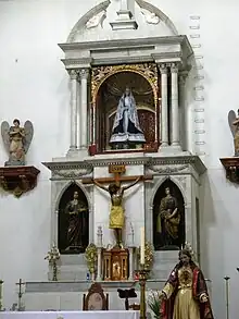 El altar de mármol fue colocado en 1903, es neoclásico al igual que el púlpito y la balaustrada del coro.[2][3] La mayoría de los muebles son del siglo XIX. Tiene pinturas en la sacristía y una de Miguel Cabrera llamada “La Santísima Trinidad”.[2]
