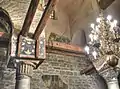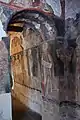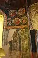 En el interior de la iglesia se puede contemplar tres capas diferentes de pinturas al fresco que se han preservado hasta nuestros días. Estas tres capas corresponden a diferentes épocas. En los frescos conservados en la capa más antigua del siglo XIII se puede observar las imágenes de los martirios de Edesa en el arco oeste.