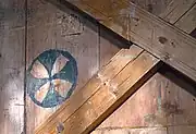 La nave tiene cuatro postes esquineros que soportan la armadura del techo. Dos postes esquineros más sostienen el techo del coro. Éste contiene ábside semicircular, un elemento de fecha posterior a la construcción del resto de la iglesia.