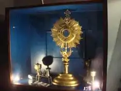 Es así, que en él encontramos, imágenes de San Agustín, Alonso de Mercadillo, la Santísima Trinidad, el Arcángel San Gabriel y objetos de plata como coronas para la Virgen de los Dolores, y cruces de todo los tamaños.