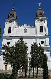 - Eparquía de Oradea (en rumano: Eparhia de Oradea y en latín: Magnovaradinen(sis) Romenorum), con sede en la Catedrala Greco-Catolică Sfântul Nicolae de Oradea. La parohia greco-catolică maghiară din Carei de Oradea es de lengua húngara.[18] Comprende el distrito de Bihor y partes de los de Arad, Satu Mare y Sălaj.