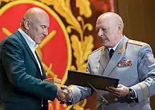 Matvienko con el Comandante en Jefe de las Fuerzas Terrestres Oleg Salyukov durante la presentación del himno de las Fuerzas Terrestres rusas el 1 de octubre de 2016