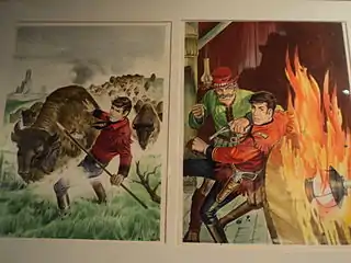 ![]() Dibujos de Il Piccolo Ranger, exposición "L'Audace Bonelli". | ||