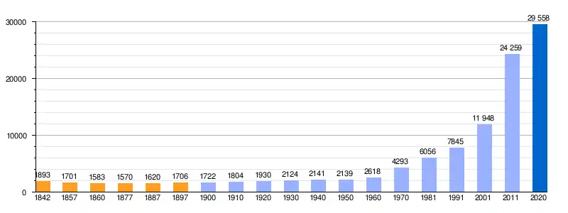 Población de derecho (1842-1897, excepto 1857 y 1860 que es población de hecho) según los censos de población del siglo XIX. Población de derecho (1900-1991) o población residente (2001-2011) según los censos de población del INE. Población según el padrón municipal de 2020 del INE. |