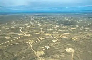 En el Reino Unido, el espaciado probable de los pozos visualizado por el informe de evaluación ambiental estratégica DECC de diciembre de 2013 indicó que era probable que existieran espaciado de 5 km en las áreas con mucha gente, con hasta 3 hectáreas (7,4 acres) por plataforma de pozos. Cada plataforma podría tener 24 pozos separados. Esto equivale a 0.16% del área de la tierra.[86] Un estudio publicado en 2015 en Fayetteville Shale descubrió que un campo de gas maduro impactó alrededor del 2% del área terrestre y aumentó sustancialmente la creación de hábitat en el borde. El impacto promedio en la tierra por pozo fue de 3 hectáreas (aproximadamente 7 acres).[87] Las investigaciones indican que los efectos en los costos de los servicios de los ecosistemas (es decir, los procesos que el mundo natural proporciona a la humanidad) han alcanzado más de 250 millones de dólares por año en los EE. UU.[88][89]