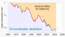 - Liu, Pang-Wei; Famiglietti, James S.; Purdy, Adam J.; Adams, Kyra H. et al. (19 de diciembre de 2022). «Groundwater depletion in California’s Central Valley accelerates during megadrought». Nature Communications 13 (7825). doi:10.1038/s41467-022-35582-x. (Archive of chart itself)