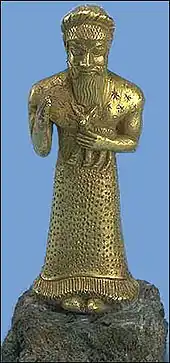 Fechadas aproximadamente en el siglo XII a. C., las estatuillas de oro y plata de adoradores elamitas muestran una cabra de sacrificio. Estas estatuillas divinas y reales pretendían asegurar al rey la protección duradera de la divinidad, bienestar y una larga vida. Las obras que mostraban a un gobernante y su ejecución de una acción ritual pretendían eternizar la eficacia de tales actos. Encontradas cerca del Templo de Inshushinak en Susa, estas estatuillas se habrían considerado cargadas de poder benéfico.[4]