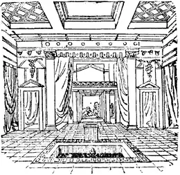 En el impluvium desembocaba el agua de lluvia que entraba en la domus a través del compluvium (una abertura central en el techo) por donde entraba la luz del sol que iluminaba todas las habitaciones adyacentes.