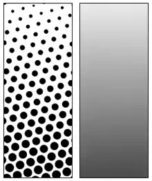 Una trama de medios tonos está compuesta por pequeños puntos ordenados en líneas. El tamaño de los puntos varía en función de los tonos que se quieren simular. Por ejemplo en las áreas claras estos puntos son pequeños y las oscuras más grandes. Los puntos de trama se comprenden de puntos de exposición en una filmadora; la resolución de una filmadora se mide en dpi (puntos por pulgada) los puntos de exposición están dentro de patrón cuadriculado o retícula denominado celda de medios tonos.