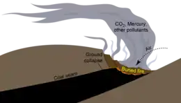 En todo el mundo, miles de fuegos subterráneos de carbón arden en cualquier momento. El problema es más agudo en las naciones industrializadas ricas en carbón, como China.[7] Se estima que las emisiones globales de los incendios de carbón hacen que 40 toneladas de mercurio pasen a la atmósfera anualmente, y representan el tres por ciento de las emisiones anuales de CO2 en el mundo.[8]
