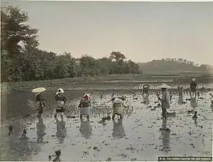 Tras el final del bafuku con la restauración Meiji, en 1868, la agricultura japonesa estaba dominada por un sistema de arrendamiento de tierras. El Gobierno Meiji basó su programa de industrialización en impuestos sobre la propiedad privada de la tierra, y la Reforma del Impuesto de Tierras de 1873 incrementó el proceso de latifundismo, lo que provocó que muchos granjeros vieran sus tierras confiscadas debido a su incapacidad para afrontar los nuevos impuestos.