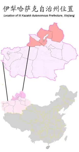 ![]() Gulja, capital de la prefectura autónoma kazaja de Ilí. | ||