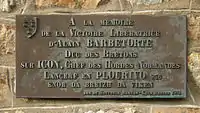 ![]() Detalle de la plaza en la fachada del ayuntamiento de Plourivo conmemorando la batalla entre Alano II de Bretaña y los vikingos en río Trieux (en la placa figura curiosamente Icon, no Incon). | ||