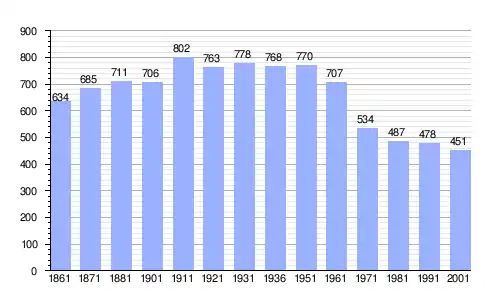 | Gráfica de evolución demográfica de Incudine entre 1861 y 2001 |