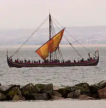 El principal material de construcción en el Imperio franco era la madera. Los troncos talados se arrastraban hasta el río, se ataban juntos y se transportaban como balsas río abajo hasta los mercados comerciales; otras mercancías y viajeros se transportaban en balsas que, en algunos casos, eran muy largas y anchas.[Wil. 5] Cuando los vikingos se asentaron en las orillas del delta del Rin, tenían una ventaja competitiva como comerciantes, porque su excelente tecnología de construcción naval les permitía superar fuertes corrientes como las del Rin, por lo que podían enviar mercancías rápidamente. Como resultado, el comercio en Renania floreció en ese momento. Como los vikingos también se habían establecido en Irlanda, Inglaterra y Rusia al mismo tiempo, el comercio de mercancías se amplió para incluir productos de las regiones más distantes y más allá de ellas.[Wil. 6]