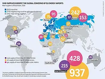 - "Russia has maintained though throughout the whole period 2007-2017 its position as the leading supplier to the EU of the main primary energy commodities – hard coal, crude oil and natural gas" https://web.archive.org/web/20191019113648/https://ec.europa.eu/eurostat/statistics-explained/index.php/Energy_production_and_imports