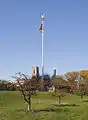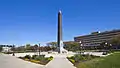 Construida sobre cinco bloques, el proyecto se concibió en 1919 con el fin de ser por un lado la sede nacional de la Legión Estadounidense y un memorial a los militares veteranos del país. La administración, así como un cenotafio están ubicados al norte de la plaza, mientras que el obelisco se encuentra al sur de la misma. En el centro, el memorial fue construido siguiendo el modelo del mausoleo de Halicarnaso. El 11 de octubre de 1994 el memorial fue reconocido como Hito Histórico Nacional. En 2007 se inauguró un museo dedicado al acorazado USS Indiana (BB-58).