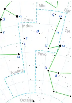 ![]() Carta celeste de la constelación del Indio en la que aparecen sus principales estrellas. | ||