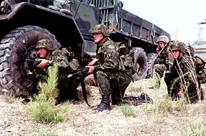 Después de la guerra de Vietnam, las Fuerzas Armadas estadounidenses vieron la necesidad de un transporte ligero de escuadra. Este proyecto dio origen al Humvee, que fue ampliamente empleado por el Ejército y el Cuerpo de Marines en la guerra del Golfo, la guerra de Afganistán y la invasión de Irak de 2003. Los últimos dos conflictos resultaron en una insurgencia a gran escala y se incrementó el uso de los artefactos explosivos improvisados. Rápidamente estos fueron la principal causa de bajas a las fuerzas de la OTAN.[7][8] El resultado fue un cambio de los vehículos ligeramente blindados a vehículos sobre orugas o vehículos MRAP con blindaje más grueso. Durante el periodo de uso del Humvee en Irak y Afganistán, antes de la introducción de los MRAP, lentamente se hizo más blindado con grandes torretas, vidrio blindado y blindaje adicional en las puertas y sus componentes. Se desarrollaron vehículos MRAP con menos blindaje, pero más veloces y ligeros, bajo el programa Joint Light Tactical Vehicle, tales como el Oshkosh L-ATV y el Oshkosh M-ATV. Estos fueron descritos como "el primer vehículo específicamente construido para el campo de batalla moderno y sus redes".[9] Estos vehículos fueron desplegados en Rojava, Siria, durante la Operación Resolución Inherente.[10]