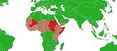 La exembajadora de la Organización de las Naciones Unidas (1997-2003) contra la ablación, la exmodelo somalí Waris Dirie, quien sufrió una infibulación a los tres años,[8] ha conseguido que esta práctica se haya vuelto ilegal en algunos países africanos, aunque se sigue practicando al margen de la ley.