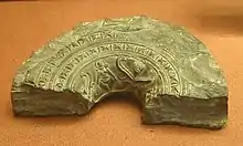 Otro extranjero bastante similar también se representa en Bharhut, el «Bharhut Yavana», también vistiendo una túnica y una diadema real a la manera de un rey griego, y mostrando una triratna budista en su espada.[53][54]