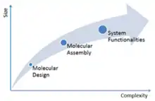 El diseño molecular ha sido un elemento importante de muchas disciplinas académicas, incluidas la bioingeniería, la ingeniería química, la ingeniería eléctrica, la ciencia de los materiales, la ingeniería mecánica y la química. Sin embargo, uno de los desafíos actuales es reunir la masa crítica de mano de obra entre las disciplinas para abarcar el campo desde la teoría del diseño hasta la producción de materiales, y desde el diseño del dispositivo hasta el desarrollo del producto. Por lo tanto, si bien el concepto de ingeniería racional de la tecnología de abajo hacia arriba no es nuevo, aún está lejos de ser ampliamente traducido en esfuerzos de I&D.