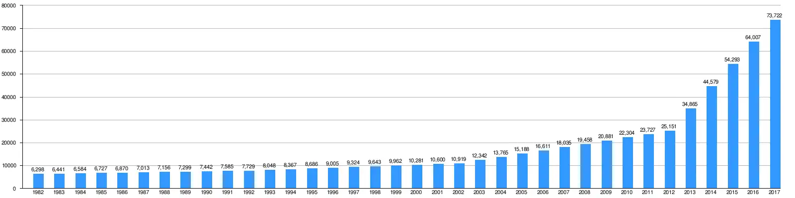 | Gráfica histórica de la inmigración boliviana en Chile (Según los censos de población de Chile) |