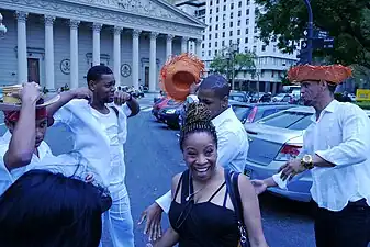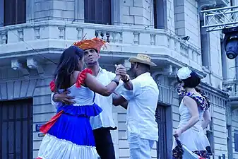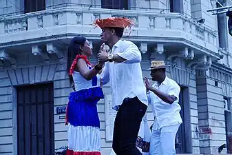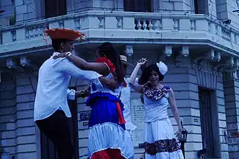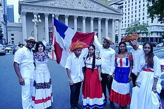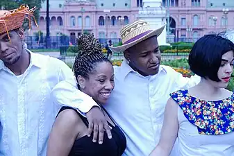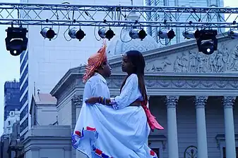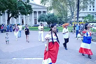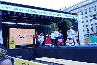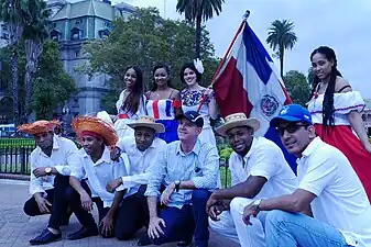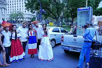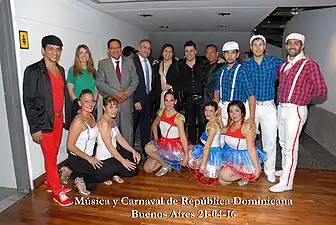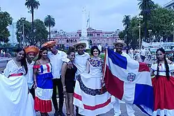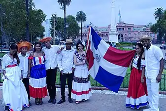 ![]() Cuerpo de Baile Folklórico de la Embajada de la República Dominicana en Ciudad de Buenos Aires, Argentina, en la ocasión de la Elección de la Reina Porteña de las Colectividades realizada en la Plaza de Mayo Buenos Aires en el 2015. | ||