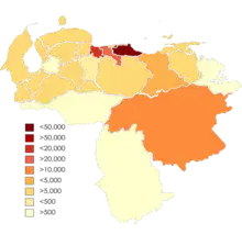 Los italianos - según la misma fuente - estaban concentrados principalmente en la región centro-norte costera de Venezuela, alrededor de Caracas y Valencia.[17]