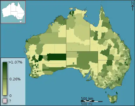 American 77,010 (by birth, Plantilla:CensusAU) 62,960 (by ancestry, Plantilla:CensusAU) | |