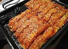 - «El Sabor de Italia en Costa Rica». Recetas típicas de Costa Rica. 24 de junio de 2013. Consultado el 9 de enero de 2017. «En Costa Rica podemos disfrutar de variados platillos italianos como: canelones, spaguetti, ñoquis, berenjena a la parmesana, tallarines, fettucine, lasagna, el minestrone, pizza etc. Para la sazón de dichos platillos utilizamos queso parmesano, tocineta, jamon, ajo, aceite de oliva, etc.»