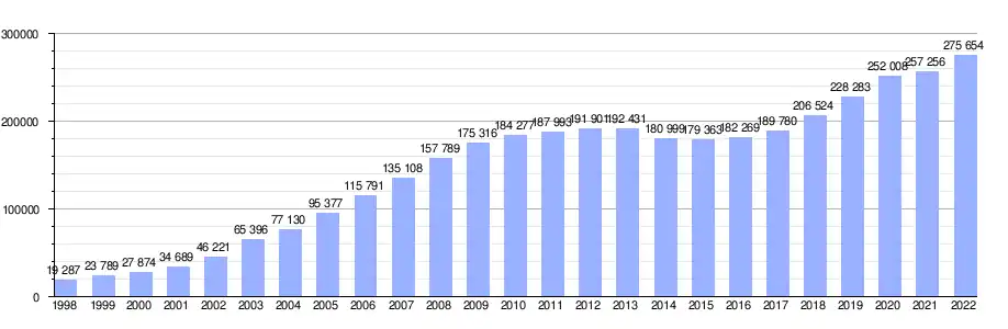 | Gráfica de evolución de Inmigración italiana en España entre 1998 y 2022 |