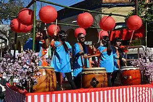 ![]() Jóvenes sansei desfilan en conmemoración del 80.º aniversario de la inmigración japonesa al Paraguay. | ||
