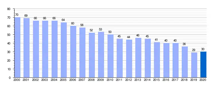 | Gráfica de evolución demográfica de Inogés entre 2000 y 2020 |